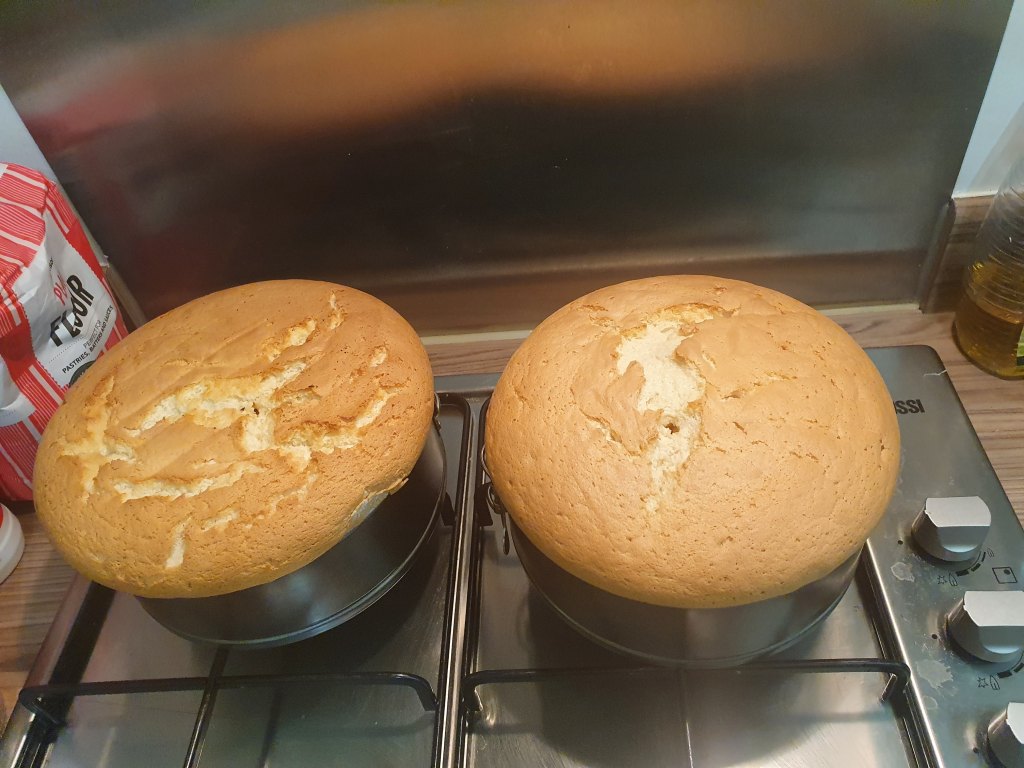 - Remove the tins from the oven and let them cool completely before decorating. The sides of the cake may sink a little but this is normal.