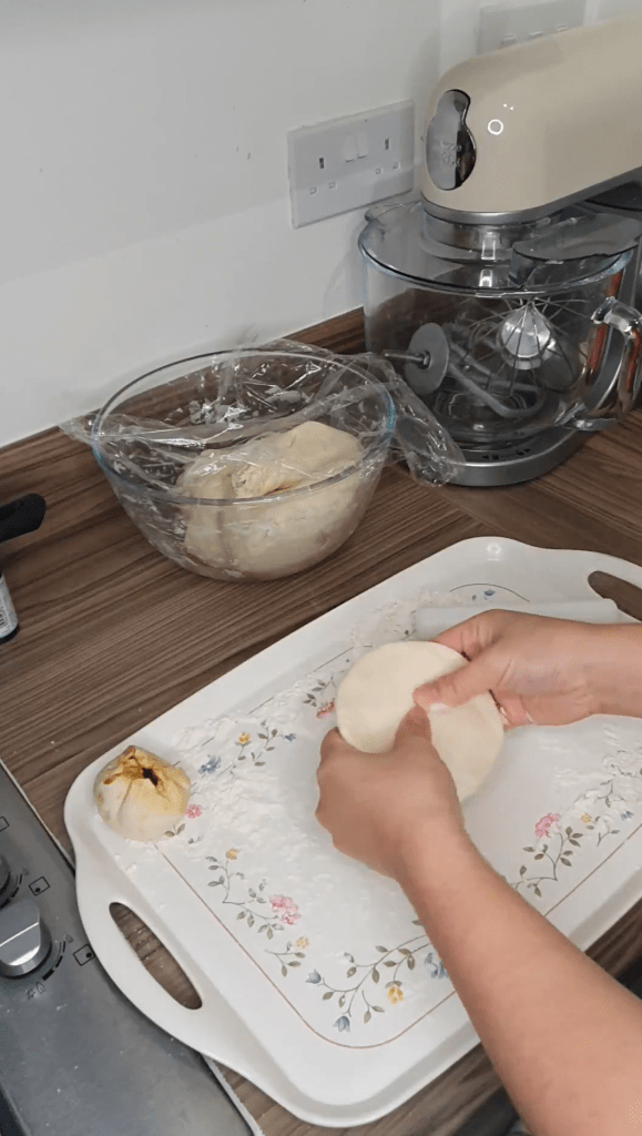 6. To turn the dough into a round shape, I used a small rolling pin to evenly roll it out whilst turning the dough. Once you’ve had a bit of practice, you can use one hand to turn the dough whilst the other rolls it out. You then add the pre-cooked filling and steam the buns for about 15-20mins or until piping hot. And that’s it!