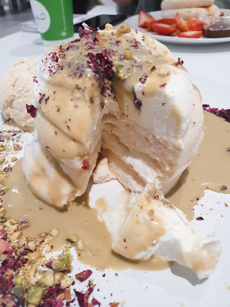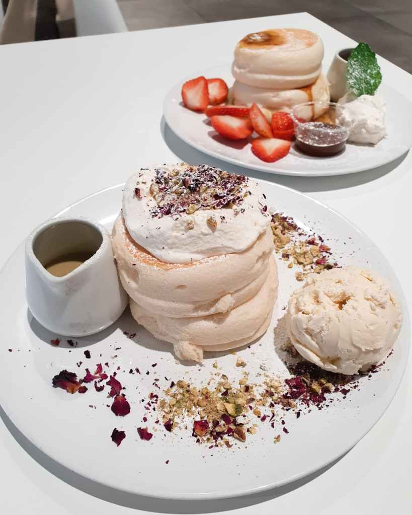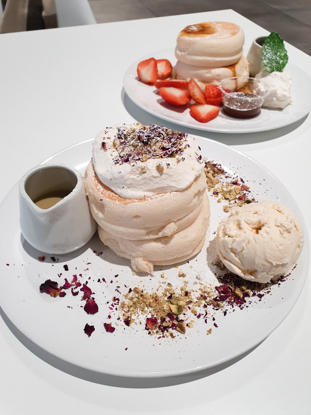 These are some of the fluffiest souffles pancakes I’ve ever had. They jiggle just the right amount and are the perfect amount of sweetness (depending on your topping choice :p).
